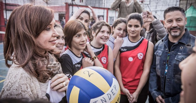 Cristina Kirchner visitó un club de Merlo, en donde estuvo acompañada por el intendente de la localidad, Gustavo Menéndez.?