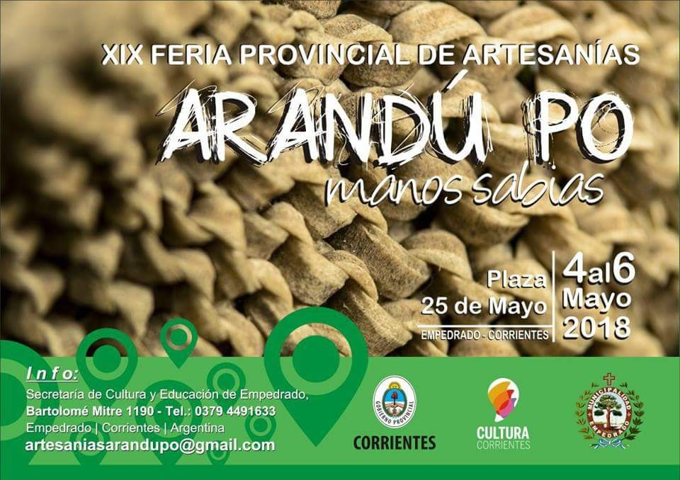 Pasa para el viernes 11, sábado 12 y domingo 13 de mayo en la plaza 25 de Mayo de Empedrado, con artesanos de diferentes lugares de la región norte del país.