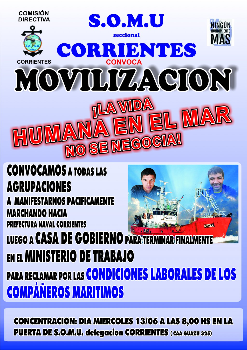 Movilización en reclamo por mejores condiciones laborales de marineros...